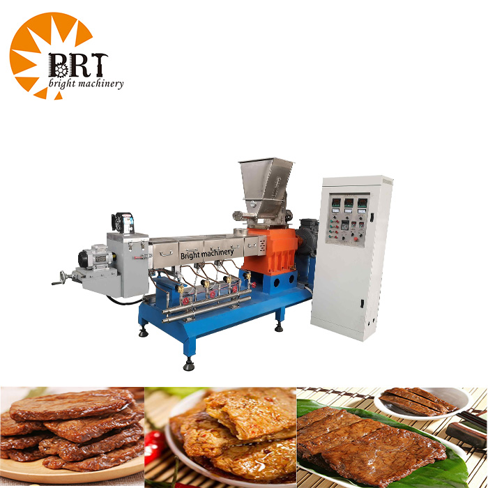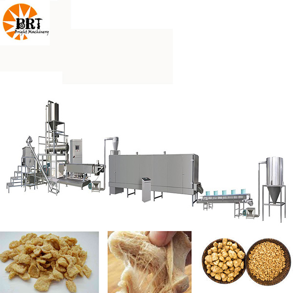 Двухшнековый экструдер для соевого белка TVP/TSP представляет собой непрерывный, высокотемпературный процесс стерилизации под высоким давлением и кратковременный процесс стерилизации. Соевый белковый продукт, производимый этим двухшнековым экструдером, обладает хорошими водопоглощающими и маслоудерживающими характеристиками, сильным вкусом, высокотемпературной стойкостью и тушеным мясом, поэтому его можно широко использовать в мясных продуктах, фаст-фуде, замороженных продуктах, фаршировании, приправе лапши быстрого приготовления и так далее. По сравнению с традиционным производственным процессом, двухшнековый экструдер, производящий соевый белок, имеет следующие характеристики: